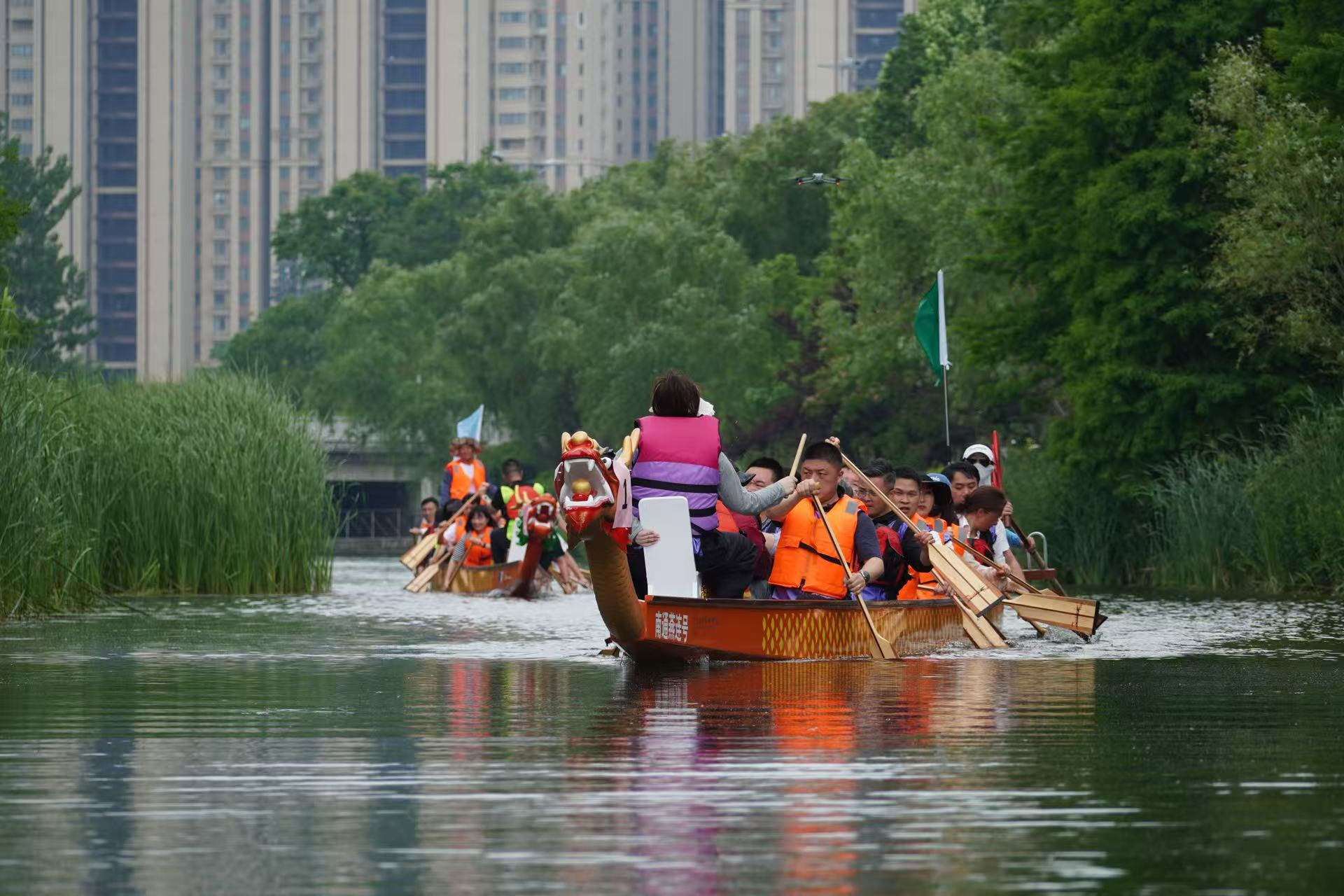 比賽過程中,各支隊伍你追我趕,競爭激烈。有的隊伍起初稍顯落后,但隊員們毫不氣餒,迅速調(diào)整節(jié)奏,憑借著頑強的毅力和默契的配合,逐漸迎頭趕上;有的隊伍一馬當先,始終保持領(lǐng)先優(yōu)勢,展現(xiàn)出強大的實力。在龍舟競技中,隊員們深刻體會到了團隊合作的重要性。只有心往一處想,勁往一處使,聽從指揮,相互配合,才能讓龍舟快速前進。每一次劃槳的力度、速度和方向都需要團隊成員高度一致,任何一個人的失誤都可能影響整體的節(jié)奏。